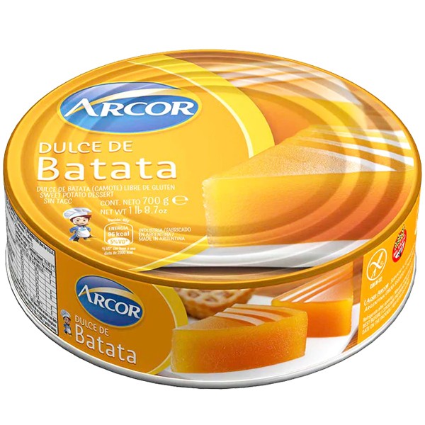 Dulce de Batata Arcor es un delicioso dulce Argentino, lo puedes utilizar para comer con queso fresco, como relleno de postres, etc.
