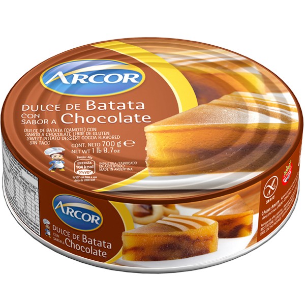 Dulce de Batata con chocolate Arcor es un delicioso dulce Argentino, lo puedes utilizar para comer con queso fresco, como relleno de postres, etc.
